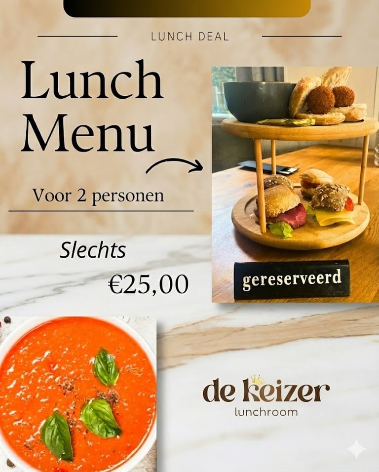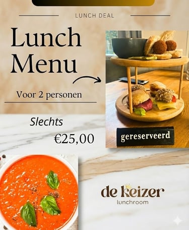 Trakteer jezelf op een heerlijke lunch voor 2 personen voor slechts €25,00 met onze fantastische lunchdeal!